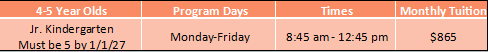 Jr. Kindergarten (four/five year olds)