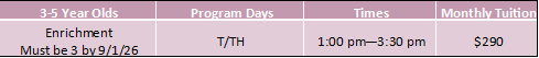 Waitlisted: 2 days (T/Th) PM Enrichment Class