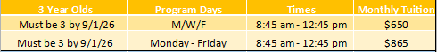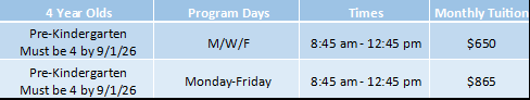 3 days (MWF) PreK class